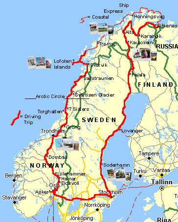 We took a trip to Norway in June 2002 to tour the country with our good Norwegian friends (of 45 years). So we had some “expert” tour guides. As part of our trip planning, we jointly developed a day-by-day itinerary document for the trip. That document, updated with actual pictures from the trip, formed the basis for these web pages. We covered a great deal of the Norwegian West & Northern coast, both by car, ferry boat and Coastal Express (cruise ship). We drove back from far northern Norway (Kirkenes) thru Finland and Sweden, visiting Stockholm for three days and then back to Asker (suburb of Oslo) before returning to Boston…. The trip cover over 5000 km by car and 1000 km by ferry and Coastal Express ship.